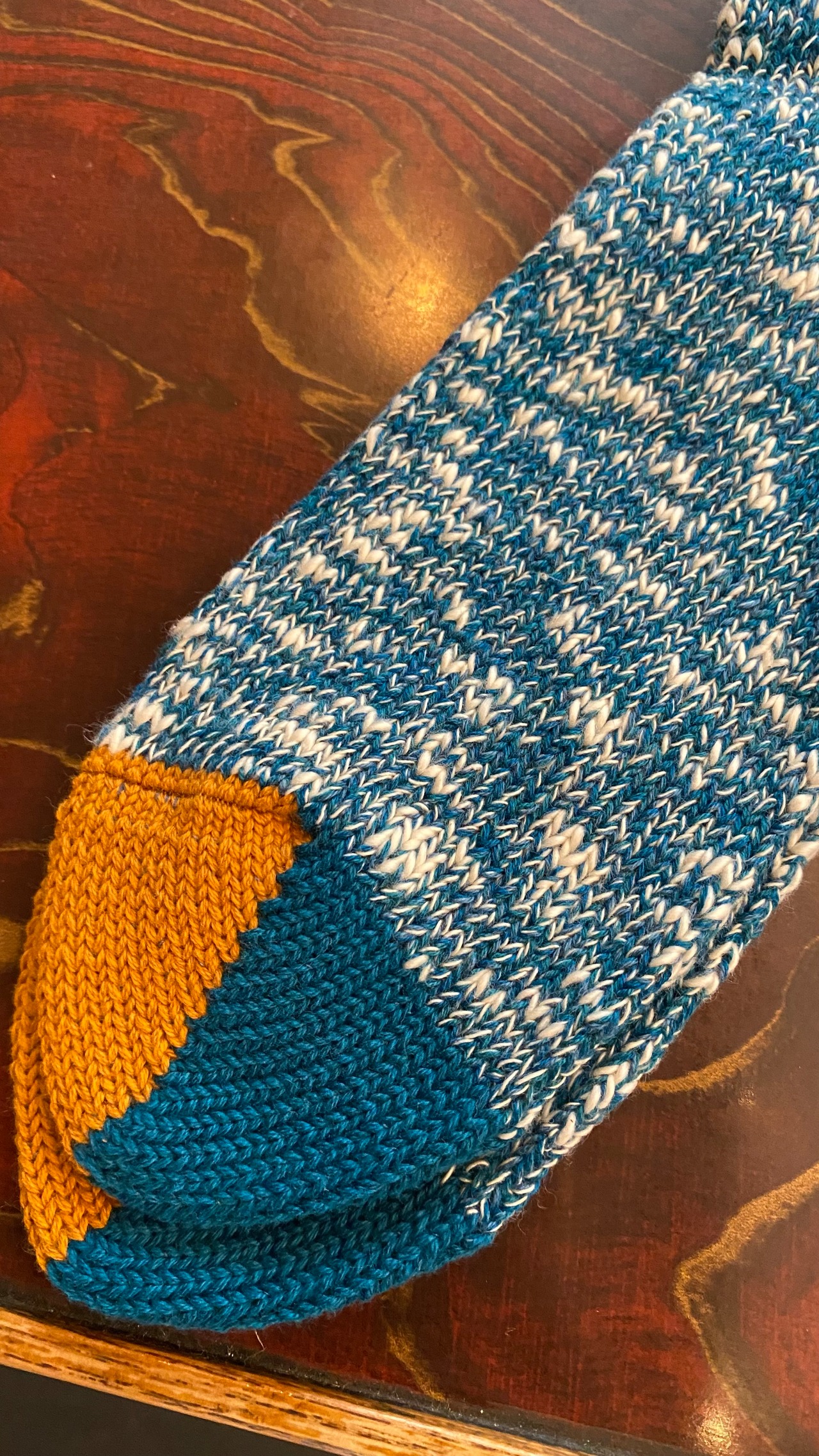 つま先とかかとのパッチワークのような切り替えがポイント